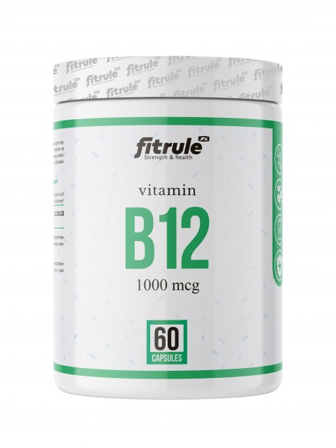 Fitrule Vitamin B12 1000mcg 60 caps – это водорастворимый витамин - цианокобаламин, который не синтезируется в организме, а поступает только извне, с пищей. Витамин В12 выполняет целый ряд жизненно важных функций и накапливает свои резервы в печени, так как его ежедневная потребность крайне высока и он используется организмом регулярно. Польза витамина В12 для организма: - В12 принимает участие в синтезе нуклеиновых кислот и ДНК, то есть поддерживает наследственную информация - В12 участвует в образовании эритроцитов и не дает организму впасть в такое состояние как - анемия. - В12 обеспечивает функционирование нейронов головного мозга, поддерживает их метаболизма и принимает участие в синтезе нейромедиатора ацетилхолина. Так же цианокобаламин обеспечивает образование миелина на нервных волокнах, благодаря которому передается нервный импульс - Фитрул витамин В12 1000 мкг 60 капсул принимает участие в фолатном цикле, который нейтрализует вредный для сосудов и сердца гомоцистеин, превращая его в метионин - В12 является природным обезболивающим