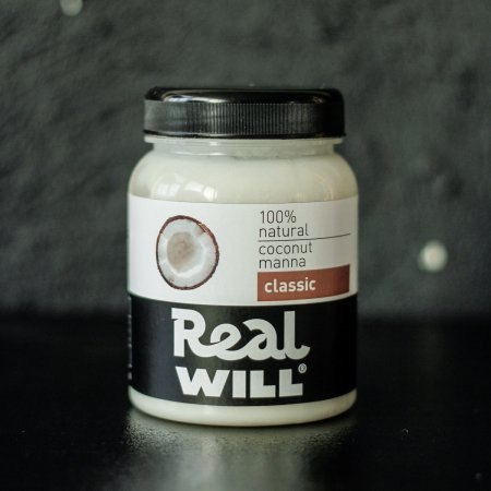 Кокосовая Манна Real Will не содержит сахара, гидрогенизированных масел, красителей, консервантов.